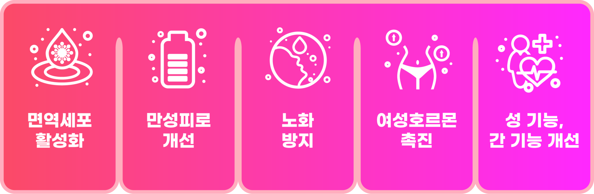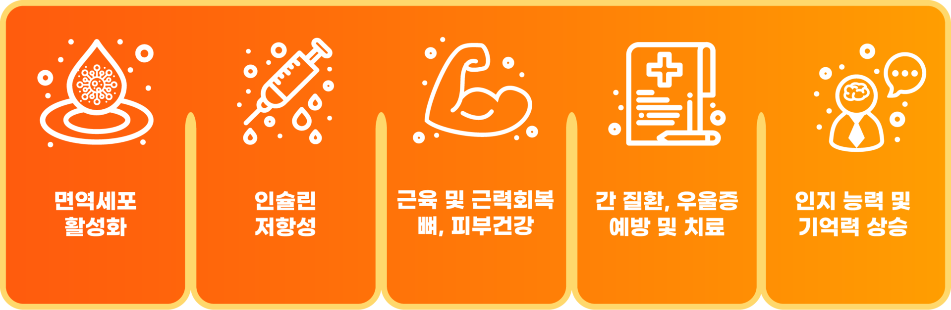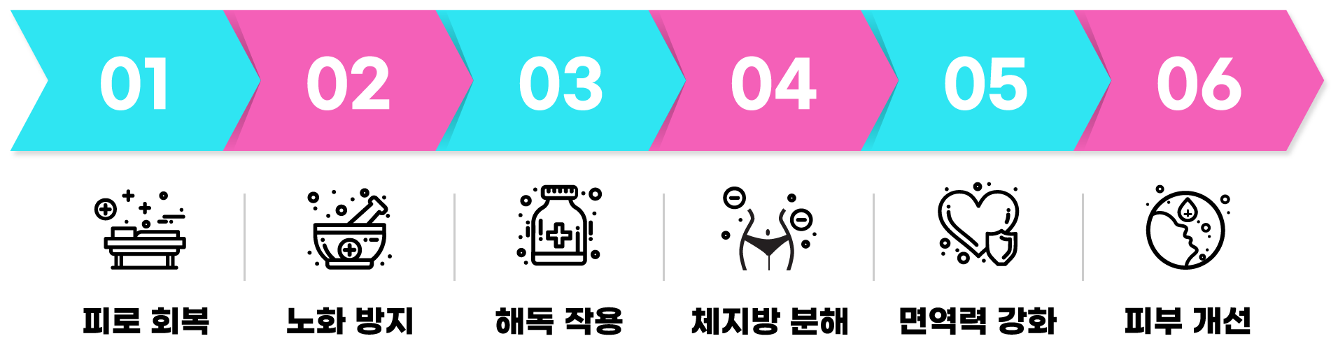 글루타치온과 함께 강력한 항산화력으로 체내 유해 활성산소 억제 및 긍정적인 효과로 탄력, 미백, 혈액 순환 개선, 노화 방지, 혈당 조절 등 다양한 기능을 제공합니다.
